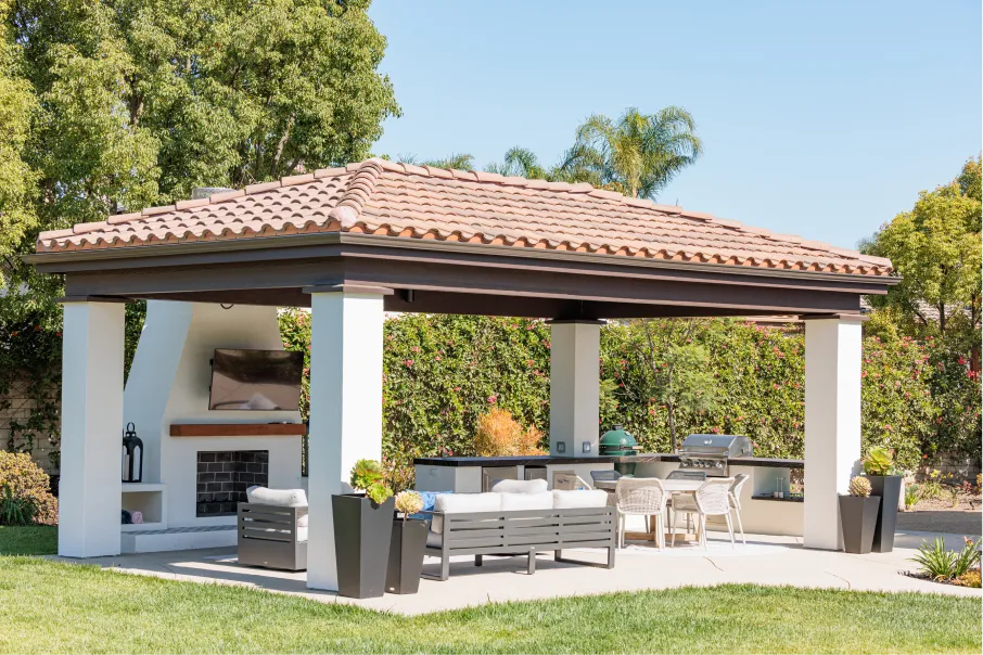 Cabana, Outdoor Kitchen, Landscaping & Lighting, Fireplace, Pergola + Patio, Pool